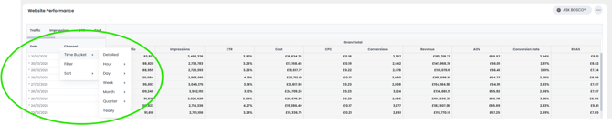 Change the date bucketing (grouping)
