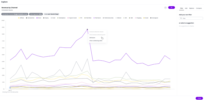 Explore Mode lets you dig deeper into your data directly from a Dashboard visualization.