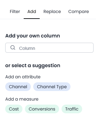 The Add tab lets you include new columns in your visualization for deeper insight.