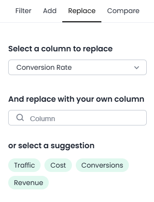 Use the Replace tab to swap one measure or attribute with another.