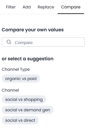The Compare tab allows you to evaluate two values using the versus keyword.